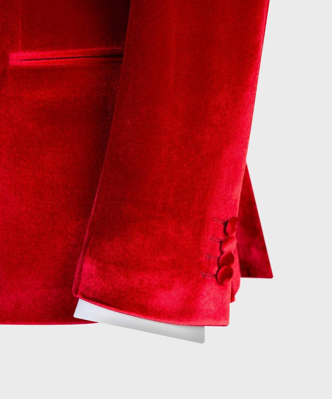 Featuring a sharp wide double-lapel design, this slim-fit suit blends modern elegance with refined details. The colorful inner lining and triple pocket detail enhance its stylish appeal. Paired with matching trousers and gold-tone buttons, it exudes a luxurious and polished finish.
