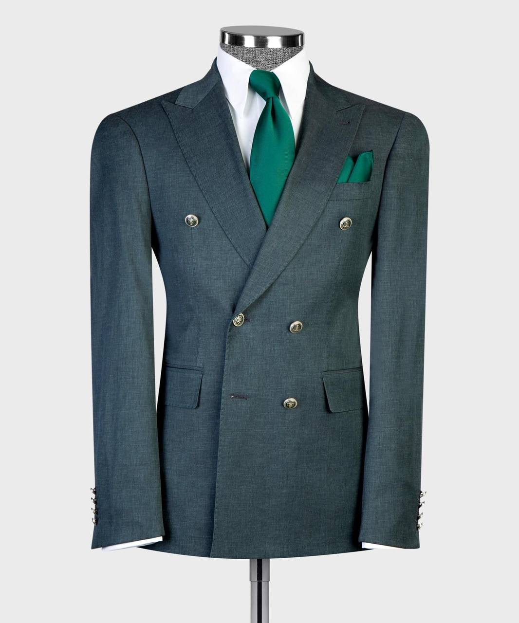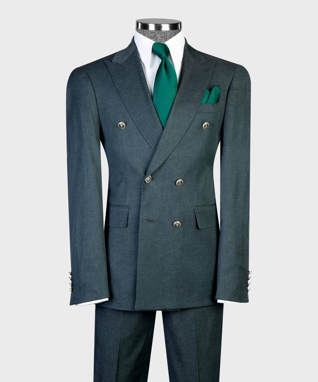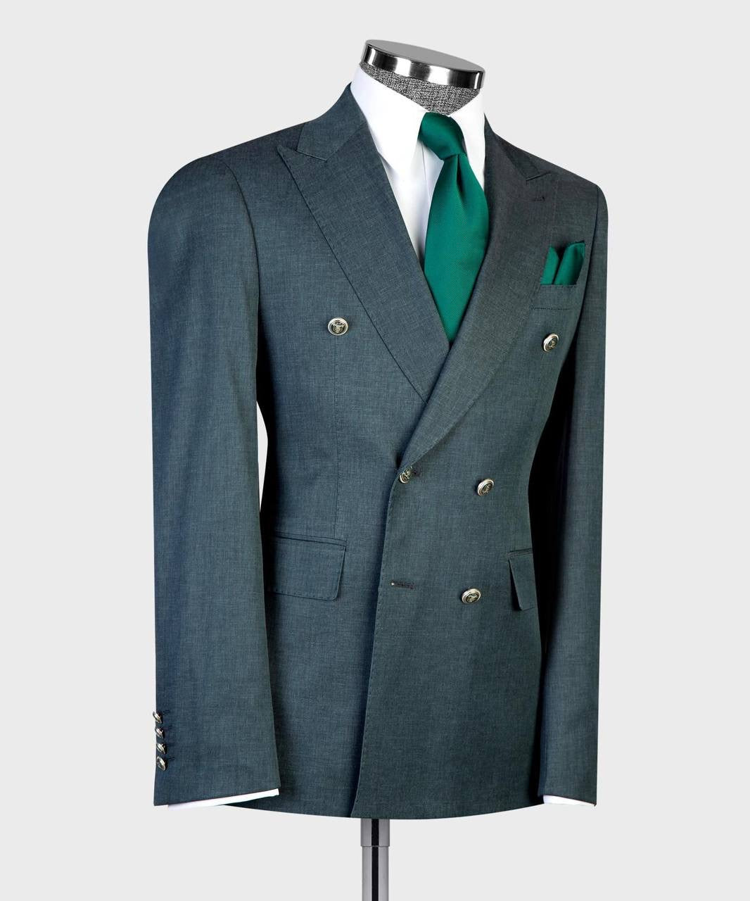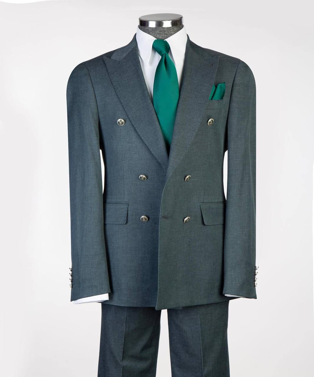 Crafted from a premium 70% denim cotton blend, this double-breasted suit embodies a refined yet sporty elegance. The metal buttons enhance its contemporary, casual appeal, while the matching trousers — tailored from the same fabric — complete the cohesive look. Featuring a flap pocket on each side, the suit offers both style and practicality. Designed in a slim-fit silhouette, it ensures comfort and a sharp, modern profile suitable for both casual sophistication and everyday wear.