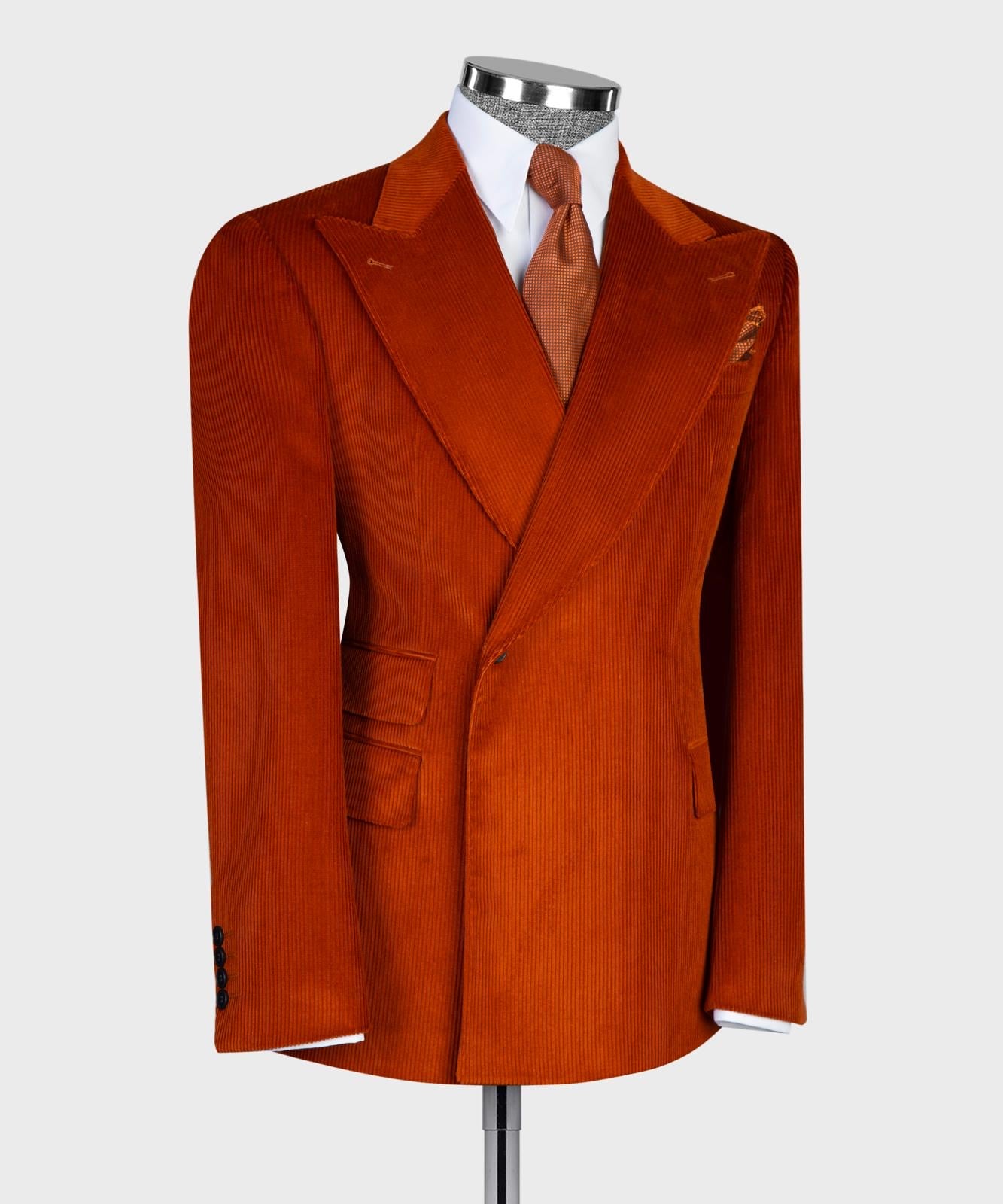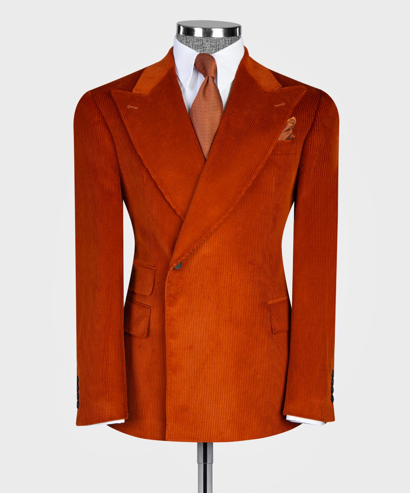 The look is completed with matching corduroy trousers, designed in the same luxurious fabric for a seamless set. The suit offers a high-quality, soft, and comfortable texture, making it the perfect choice for fall and winter occasions.