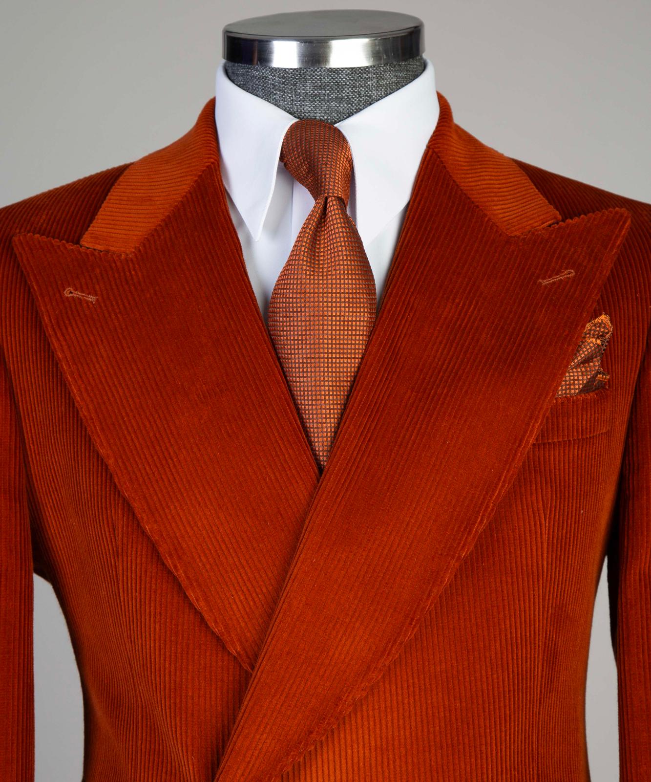 Stand out this season with JM MENSWEAR’s signature Corduroy Bold Suit, crafted from premium ribbed velvet for a refined yet contemporary appeal. The blazer features a wide Italian lapel for a touch of timeless elegance, while the sides are detailed with three flap pockets, combining practicality with sophistication.