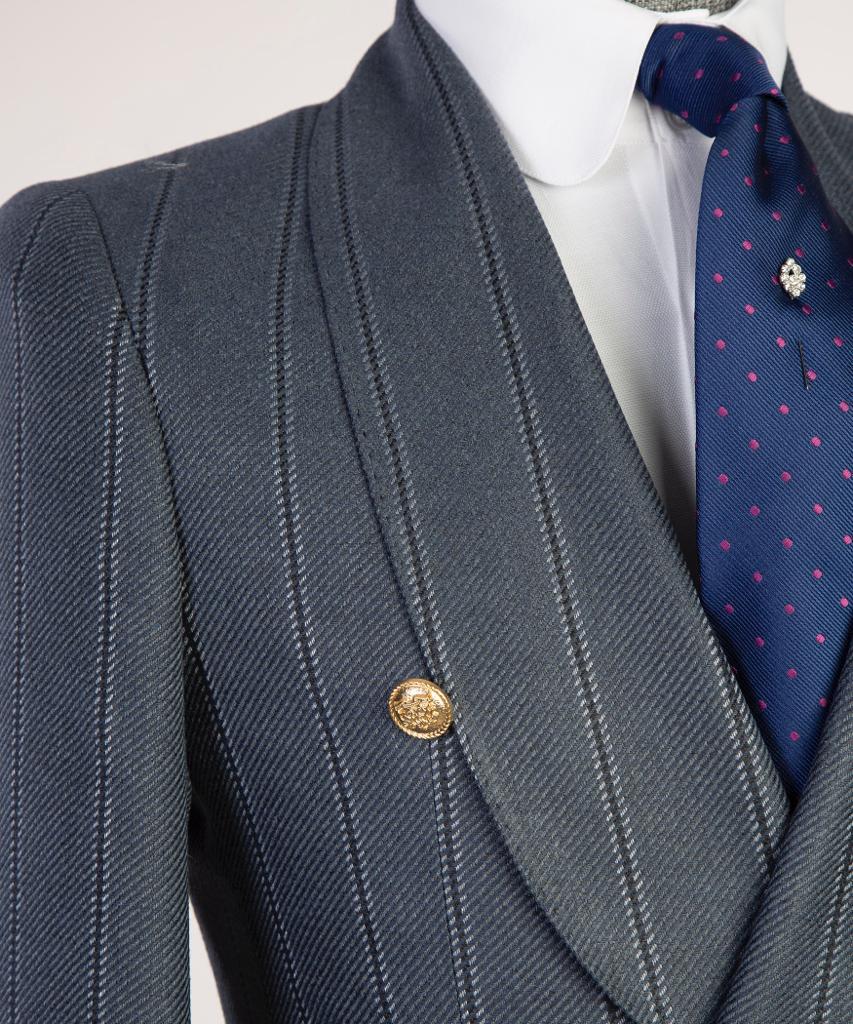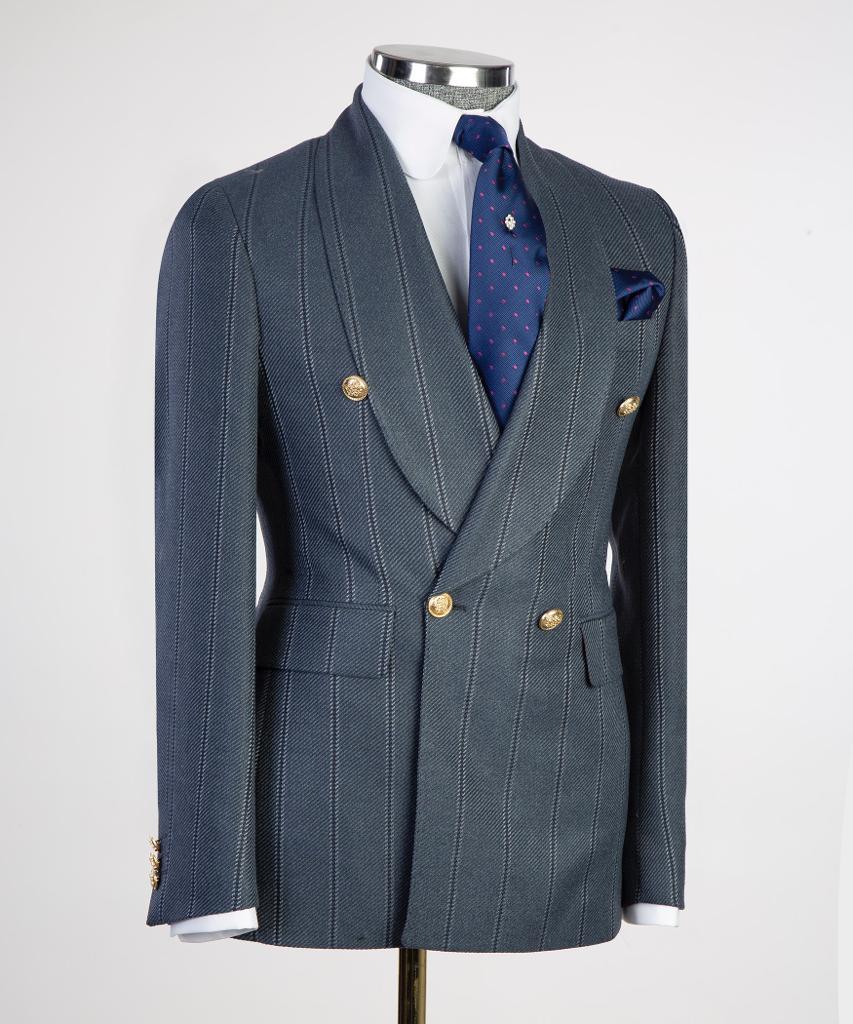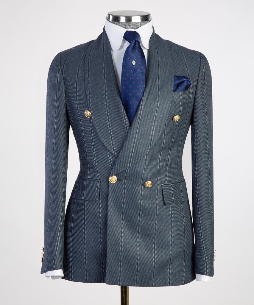 This Two pieces Suit by JM Menswear.Created in silk-wool for a luxurious feel, this modern suit is cut to a relaxed fit and comprises trousers and a double-breasted jacket with silk accents throughout. It comes with black tuxedo pants.