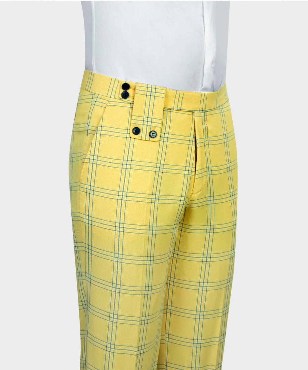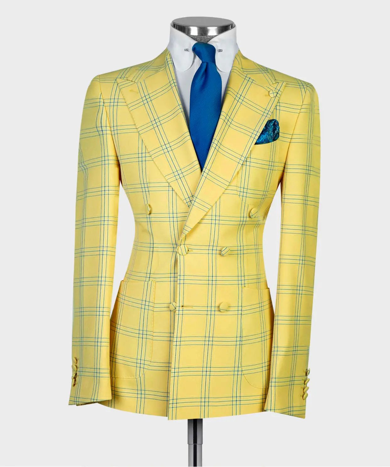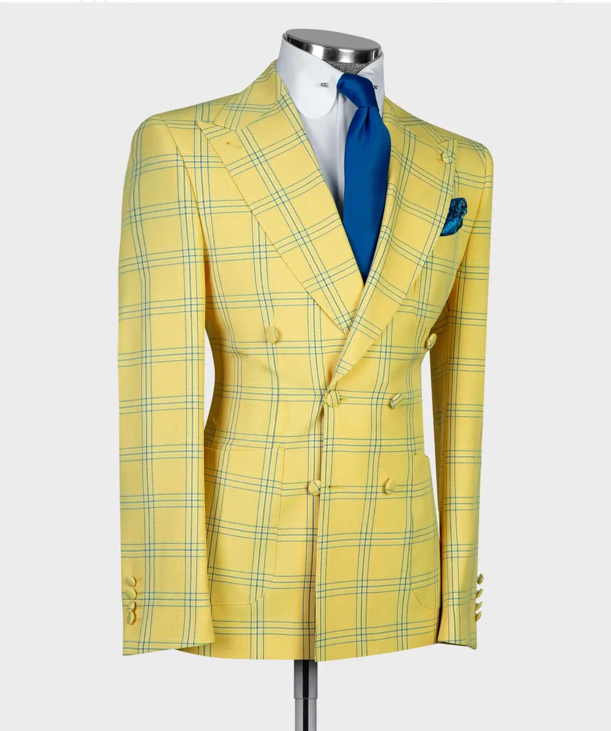 Suti ya Kawaida ya Plaid na JM Menswear, Iliyofumwa kwa pamba Bikira na muundo mdogo uliosafishwa. Inajumuisha koti moja ya kifua na suruali ya mguu wa moja kwa moja, na vest. suti hii ya kisasa hutolewa kwa kufaa mara kwa mara na silhouette kali ambayo haina hisia ya kizuizi.