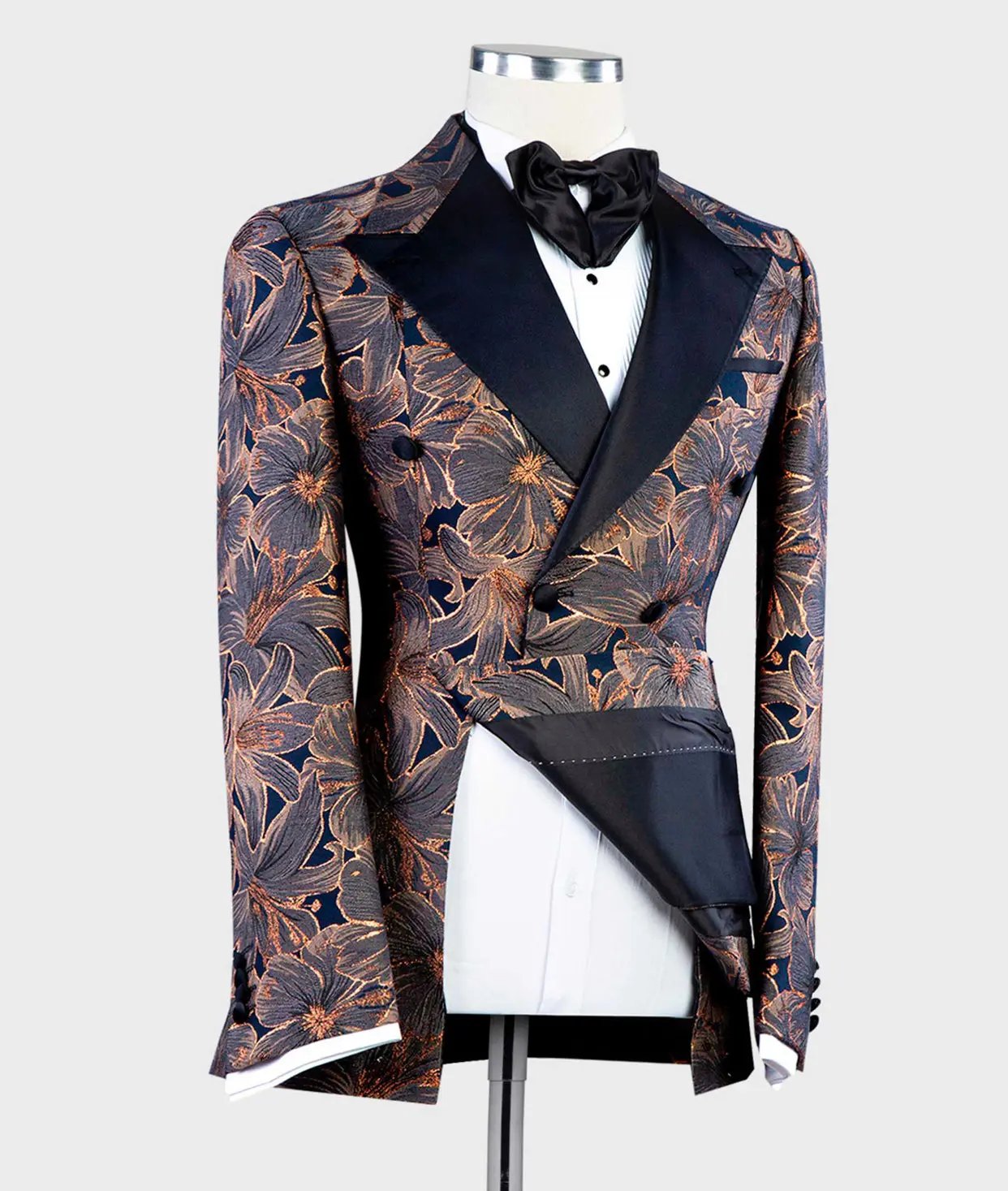 Tuxedo iliyoundwa kwa ustadi na JM Menswear, Imeundwa kwa pamba mbichi yenye mnyoo wa asili kwa ajili ya kuvalia starehe. Iliyopunguzwa na lafudhi ya hariri kwenye lapels, mifuko na seams za upande wa suruali, tuxedo hii ya vipande vitatu hukatwa kwa kufaa maalum kwa silhouette ya kisasa.vifungo vilivyofunikwa vya hariri huongeza kugusa kumaliza kwa mkusanyiko huu usio na wakati.