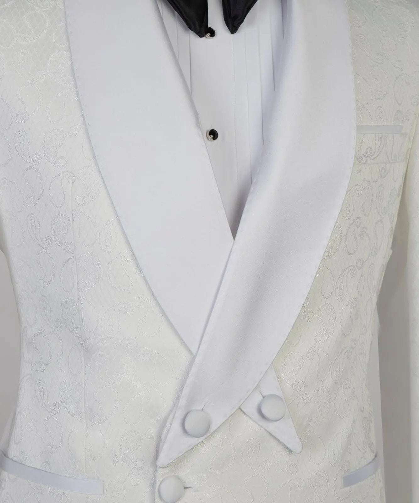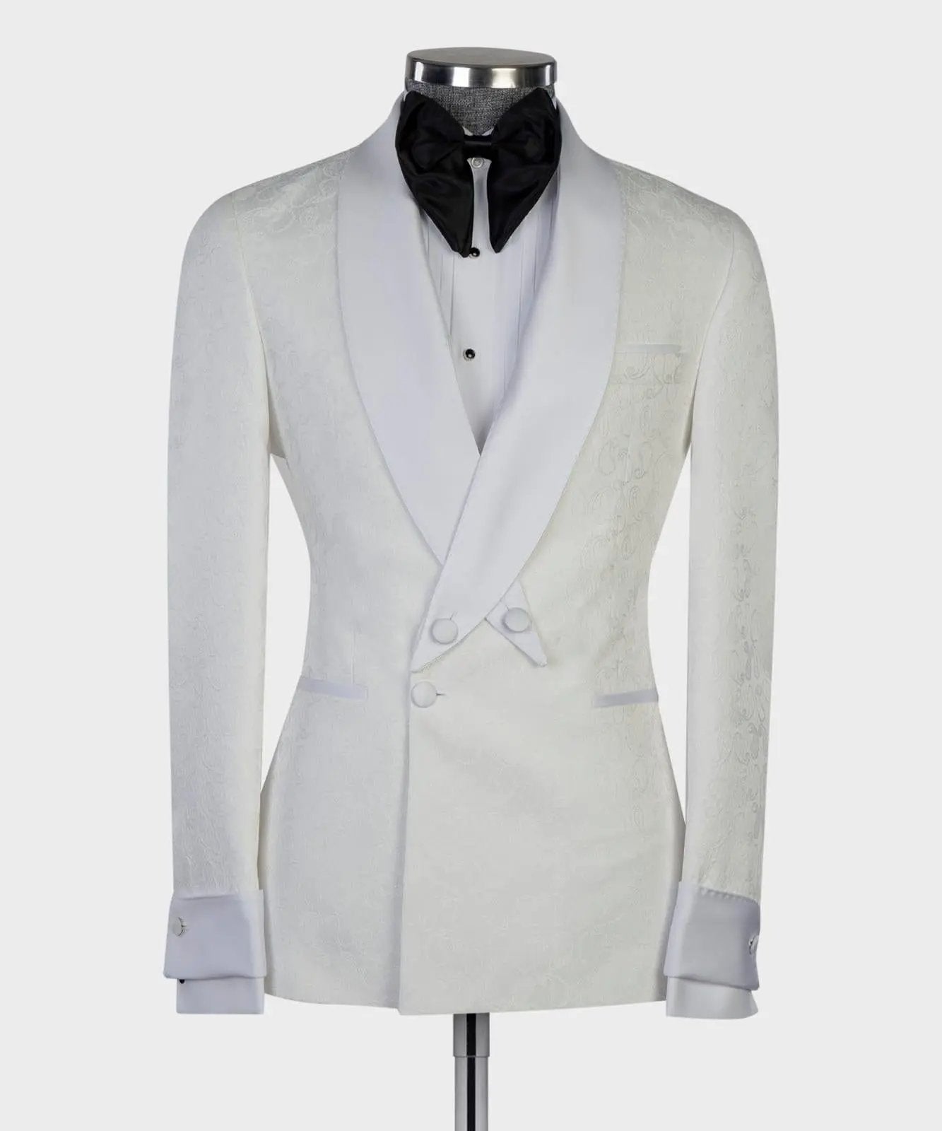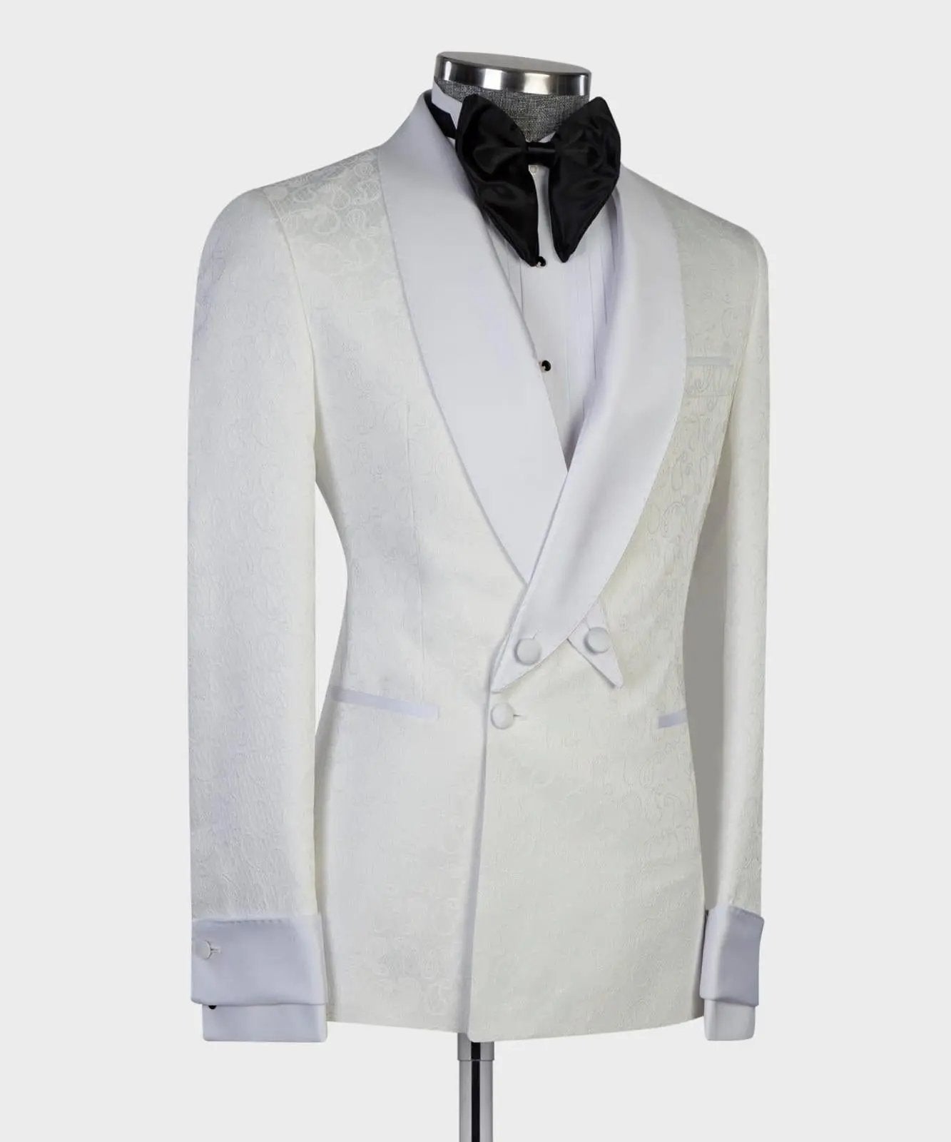 Tuxedo iliyoundwa kwa ustadi na MAX CAVALERA Menswear, iliyoundwa kwa pamba mbichi yenye mnyoo wa asili kwa ajili ya kuvaa starehe. Iliyopunguzwa na lafudhi ya hariri kwenye lapels, mifuko na seams za upande wa suruali, tuxedo hii ya vipande vitatu hukatwa kwa kufafanua kufaa kwa silhouette ya kisasa. Vifungo vilivyofunikwa na hariri huongeza mguso wa kumaliza kwa mkusanyiko huu usio na wakati.